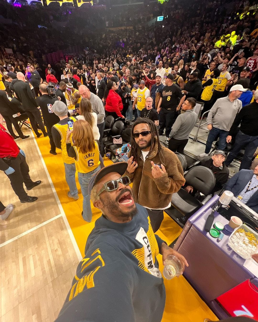 Sat in the best seat in the house for multiple Lakers games. He has the seats between the Lakers bench and the scorers table, on the floor. He even sat there for LeBron’s historic night.
