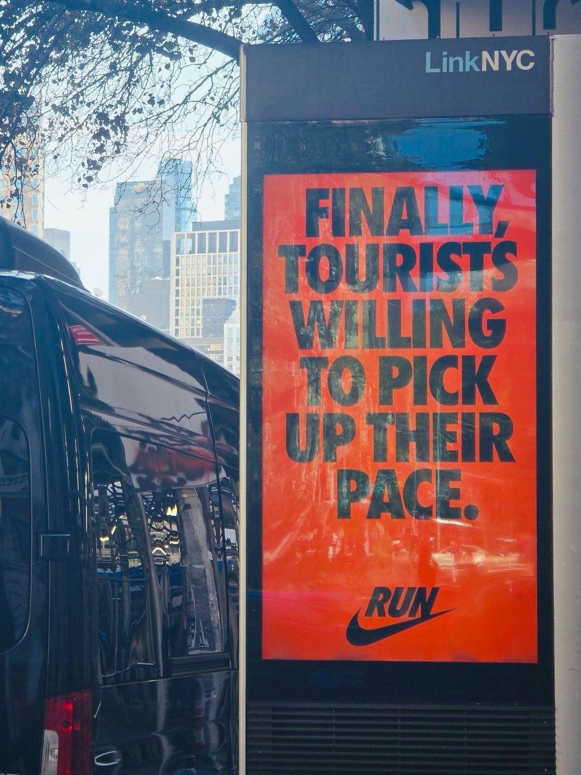 Taking an internationally and socially relevant event like the New York Marathon and using a wide out-of-home (OOH) campaign as a brand awareness play—rather than a chance to push the latest Pegasus—is Nike at its best.